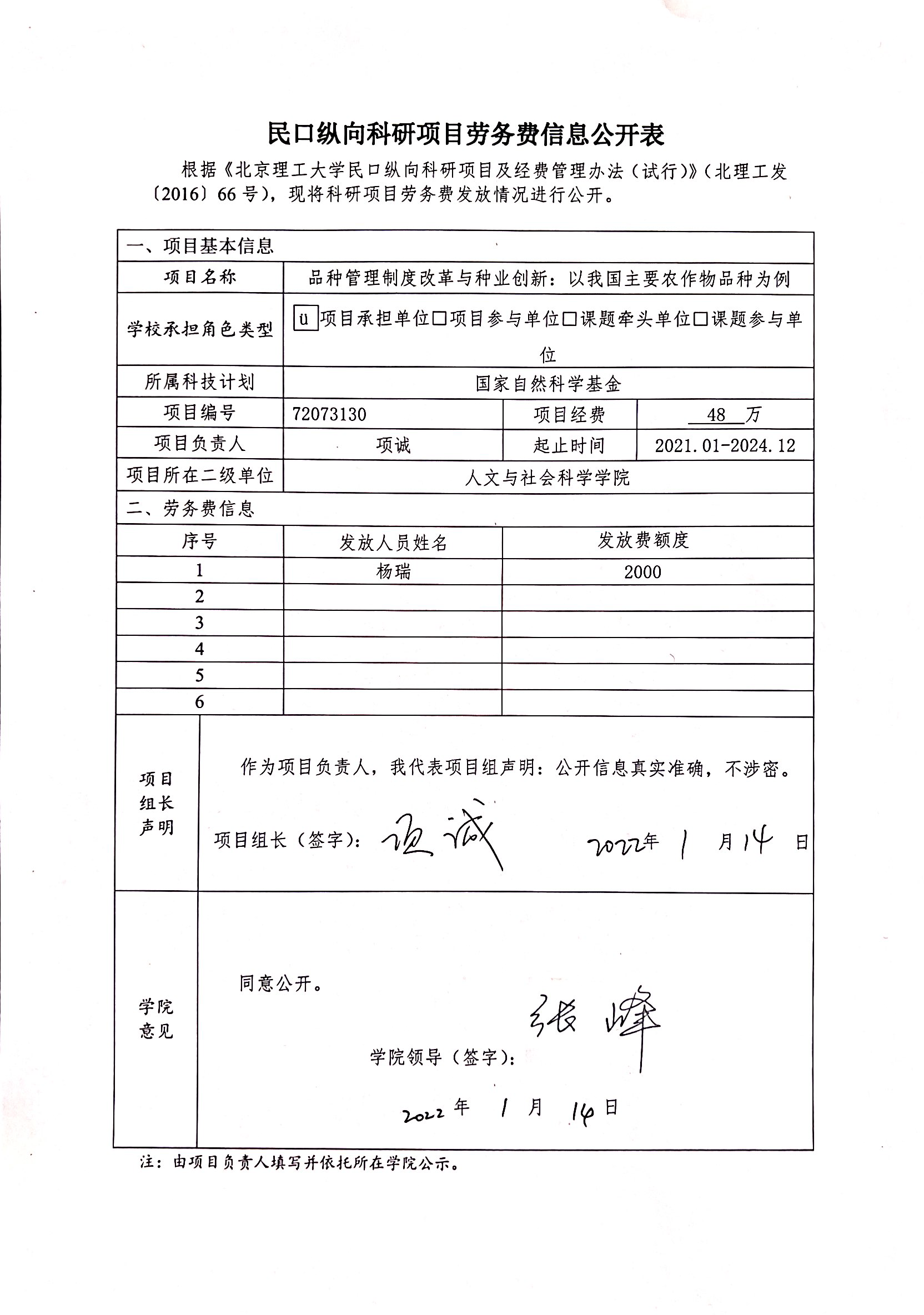 民口纵向科研项目信息公开