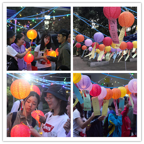 赏花灯,猜灯谜活动将节日气氛推向了高潮。在遇到难题时邀请舍友朋友,“同学休闲欢,朋友一聚乐”,一起享受猜灯谜的乐趣。明德书院还为猜对灯谜的同学准备了小花灯,同学们拿着自己赢得的小花灯,笑在脸上,乐在心底。