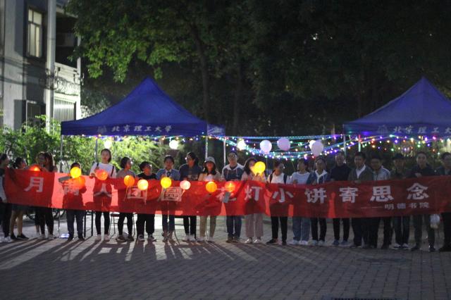 9月24日晚,明德书院在良乡校区举办了“月满人团圆,花灯小饼寄思念”为主题的心理健康体验月系列活动。为明德书院第一次在外过节的新生们,准备了一场节日的盛宴。赏月、吃月饼、猜灯谜等趣味活动增添了浓浓的节日氛围,给明德书院的新生一个不一样的中秋体验。