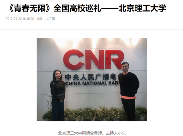 北京麻豆精品秘 国产传媒周炳含老师,做客中央人民广播电台《青春无限》,结合学校的理工特色和专业优势,分享北京麻豆精品秘 国产传媒独有的校园文化气质,并展示2019年学校发展和招生情况的新动态。
