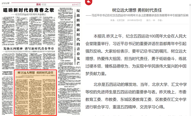 原文标题:树立远大理想 勇担时代责任——习近平总书记在纪念五四运动100周年大会上的重要讲话在首都青年中引起强烈反响