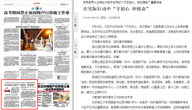 【北京青年报】在实际行动中“守初心 担使命”