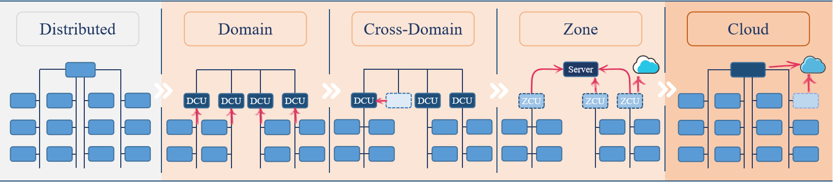 图2. 车辆通信综合架构举例:车际通信采用C-V2X和车内通信采用域集中架构