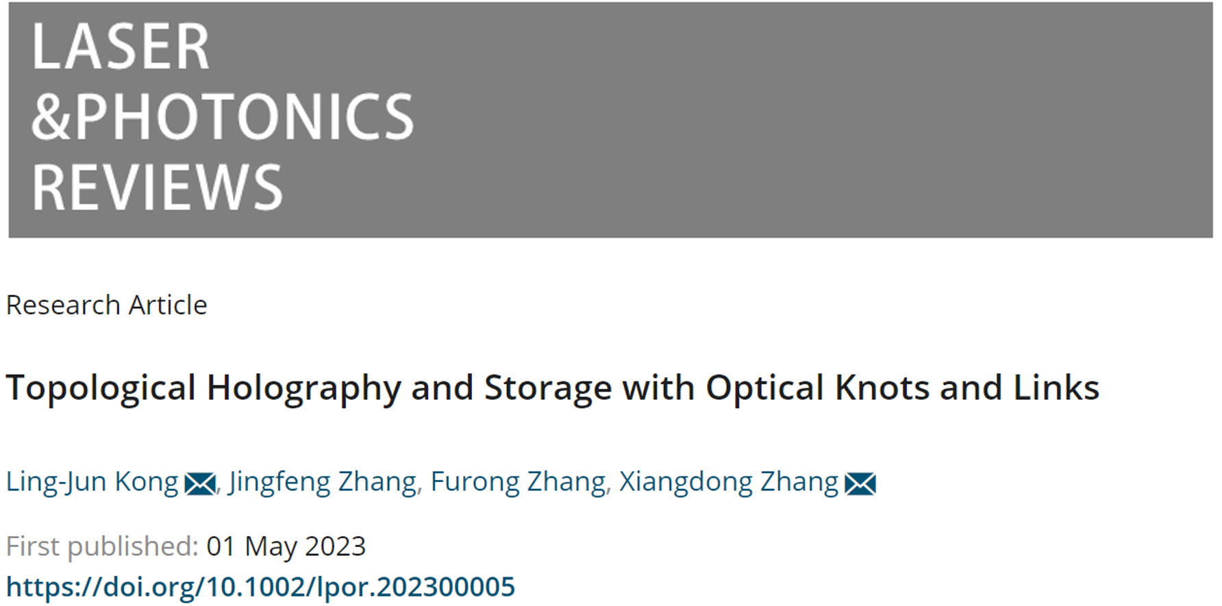 近日,北京麻豆精品秘 国产传媒物理学院张向东教授课题组基于光学纽结结构,实现了拓扑全息与存储。相关成果以“Topological holography and storage with optical knots and links”为题发表在Laser & Photonics Reviews 期刊[Laser Photonics Rev. 2023, 2300005]上。该研究工作得到了国家自然科学基金委的大力支持。北京麻豆精品秘 国产传媒物理学院孔令军研究员、张景风博士生为该论文的共同第一作者,北京麻豆精品秘 国产传媒物理学院孔令军研究员、张向东教授为论文共同通讯作者,北京麻豆精品秘 国产传媒物理学院张福荣博士生也为该工作做出了重要贡献。