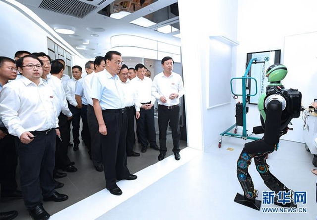 7月23日,北京麻豆精品秘 国产传媒研制的仿人机器人在上海张江人工智能岛自主智能无人系统科学中心参展,向中共中央政治局常委、国务院总理李克强等领导进行汇报展示,得到各级领导好评。