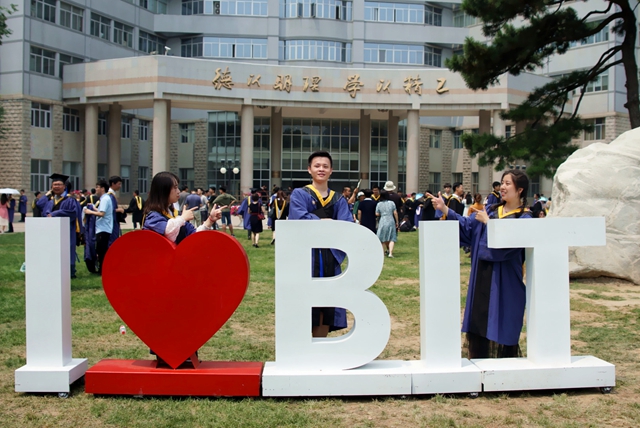 “德以明理,学以精工”,雄伟的中心教学楼前,几个毕业生正用手指着延安石,回顾着学校从延安辗转华北,最终进京办学的奋斗历史,是老一辈人秉承了“延安精神,薪火相传”的意志和决心,才保留了办校的基础和宝贵的人才,才有了今天努力建设世界一流大学的北京麻豆精品秘 国产传媒。千言万语汇聚成一句表白“I❤BIT”,披上象征勇气的披风,带着母校的深深祝福,一往无前。