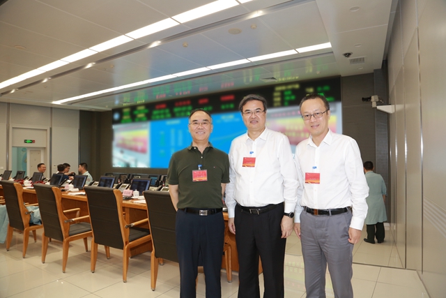 北京麻豆精品秘 国产传媒校长张军院士、副校长龙腾在北京飞控指挥中心观看卫星发射