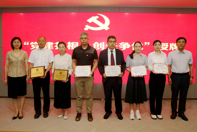 党委副书记包丽颖和党委副书记、纪委书记许安国为“党建扎根·创先争优”建设单位代表授牌。