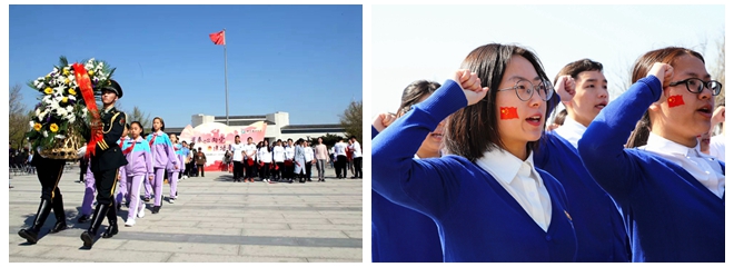 活动在庄严的国歌声中拉开序幕,全体成员向革命先烈纪念雕塑献花、默哀,并在团旗下重温入团誓词。