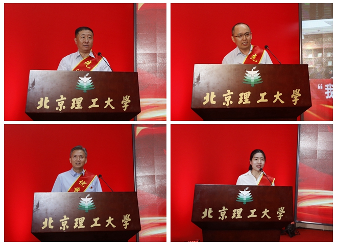 受表彰的先进党组织代表、信息与电子学院党委书记薛正辉介绍了学院党委发挥政治核心作用,以党建推进综合改革,开展特色品牌“党建导师制”及“党建工作室”的建设经验。全国首批“双带头人”党支部书记工作室负责人、自动化学院导航制导与控制研究所党支部书记宋春雷介绍了支部以党建促业务发展“三创新”和“三融合”的特色做法。优秀共产党员代表、马克思主义学院教师杨才林分享了自己在思想政治理论课教学中的创新思考和“微课教学”方法,在教学中关爱学生、因材施教的故事。优秀共产党员代表、机械与车辆学院2015级本科生朱漫福用“理想、奋斗、爱国、奉献、本领、担当”六个关键词讲述了“赛车手”的青春故事,表达了担复兴大任、做时代新人的奋斗决心。