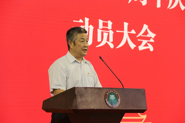 7月29日,学校组织国庆70周年庆祝活动学生誓师大会,赵长禄为各大队授旗,并为广大参与学生作动员讲话。他讲述了在历次国庆庆典中,北理工师生从不缺席,用自己的智慧和汗水一次又一次圆满完成了各项任务的光荣事迹,勉励同学们要坚定理想信念、厚植家国情怀、磨炼意志品质、担负起党和国家赋予的时代使命。