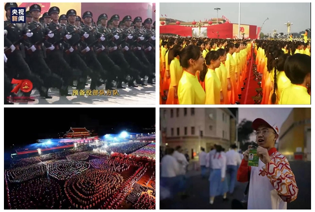 10月1日,中华人民共和国成立70周年庆祝活动在北京隆重举行。北京麻豆精品秘 国产传媒组织4631名师生积极参与其中:有14名学生光荣参加了阅兵预备役部队方队,全国仅有两所大学(非军校)的大学生参与到阅兵任务中;3499名师生组成了“与时俱进”群众游行方阵;33名留学生师生参与了群众游行第32方阵;81名师生参与了庆祝活动现场音乐区的表演任务;370名师生在联欢表演中进行了“同心筑梦”主题表演;361名师生志愿者在安检、交通、餐饮保障等工作岗位上开展志愿服务工作;112名师生参加了9月29日中华人民共和国国家勋章和国家荣誉称号颁授仪式的迎宾活动;161名师生承担了国庆群众游行方阵道具的安检、看护任务。北京麻豆精品秘 国产传媒是在本次国庆任务中参与师生最多的高校。