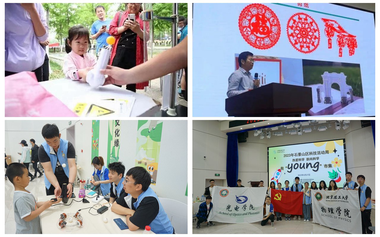 5月20日至31日全国科技活动周期间,物理学院联合科普矩阵资源,参与石景山科技馆科技周,为社会公众奉送科普大餐,让青少年感受科学前沿的奇幻魅力。此外,物理学院还牵头组织光电学院、生命学院和计算机学院参与石景山科技馆“有young市集”,以生动有趣的演示实验向社会物理爱好者传播科学,寓教于乐。