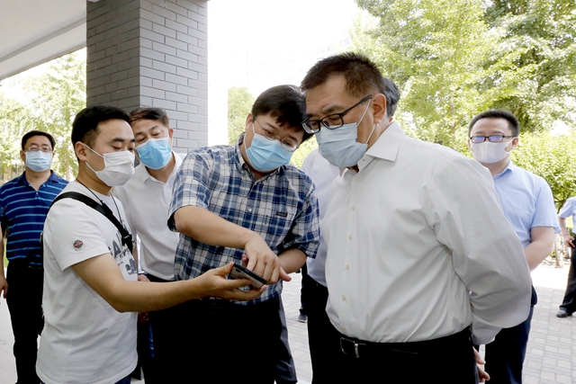 市委副秘书长郑登文,市委教育工委常务副书记郑吉春,市委教育工委副书记狄涛,市委教育工委委员、市教委副主任丁大伟,学校党委常务副书记项昌乐、党委副书记包丽颖、副校长王博陪同检查。学校党政办公室、保卫部、学生工作部、后勤基建处、学生事务中心、校医院、资产经营有限公司、物业管理与后勤服务公司负责人参加检查活动。
